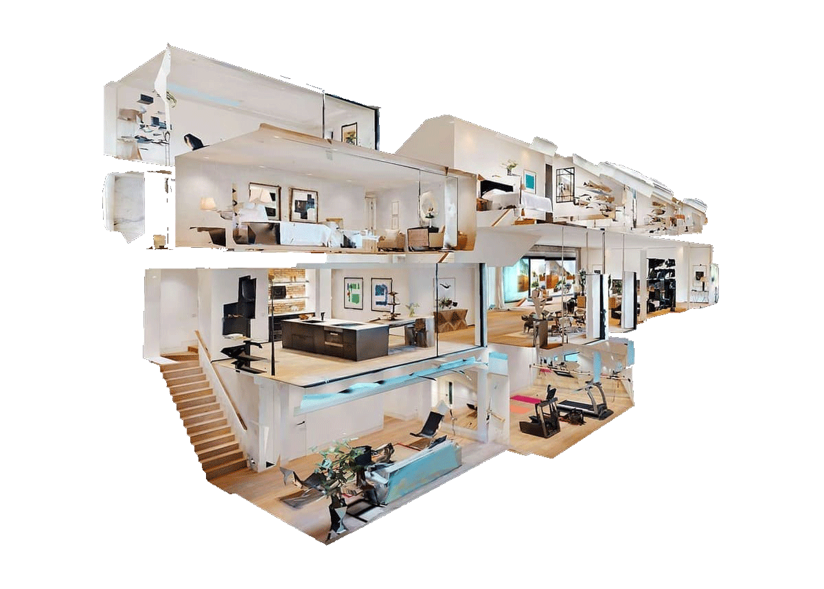 ドールハウスビュー3D空間をスキャン撮影したデータで施設や建物の全体像を一度に見ることができます。直感的に構造を把握する事ができます。