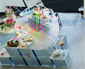 測定モード作成した3Dモデルを使用して、部屋のサイズやドア、家具の大きさなど空間内にあるものを自由に計測する事ができます。建築設計、内装工事に活用されています。